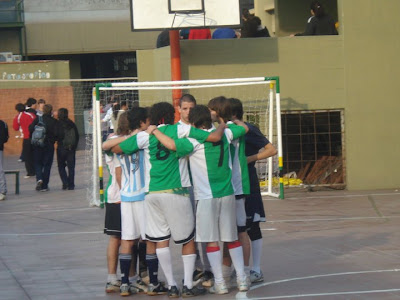 15:00hs. Canchas pintadas la semana anterior y limpias, escudos plastificados, redes puestas, los equipos de primero, Real Cóholicos y La Cancha de tu Hermana, entrando en calor a minutos de debutar en La Liga y como si fuese poco, de inaugurar la edición 2010. Muchísima gente en todo el Colegio espectante esperando el comienzo.